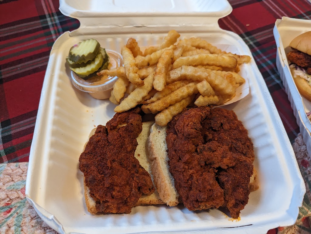 Wasn't sure what to expect since they just opened but honestly the food was fantastic. Crispy + delicious chicken, medium was perfect spice level, lots of pickles and kale slaw. About a 30 min wait start to finish on a Tuesday night with a line out the door and every table full.