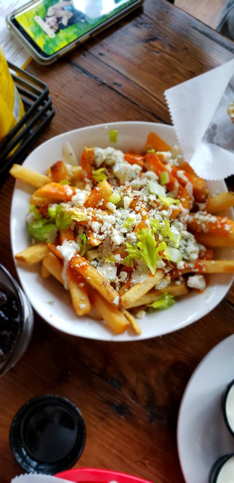 Garbage sauced wings....yum! Bacon wrapped shrimp, also delish. Homemade mozzarella triangle, very tasty. Hub's burger...pretty good. Eating on the dog friendly patio on a sunny spring evening with our pup? Priceless! We will return to try more items on the menu, but we were happy with the first few menu items, for sure. The service was prompt and accommodating and prices were about what you can expect to pay at a trendy place. Definitely worth coming to the downtown area to give them a try.