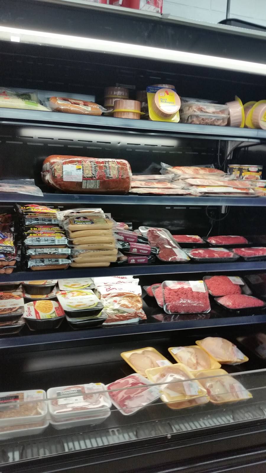Good variety of groceries. Nice deli inside for fresh sandwiches. Good selection of beer and drinks. Camping supplies aisle. Hot pizza and good coffee. ATM. Ice machines, toys and souveniers. Gasoline pumps.