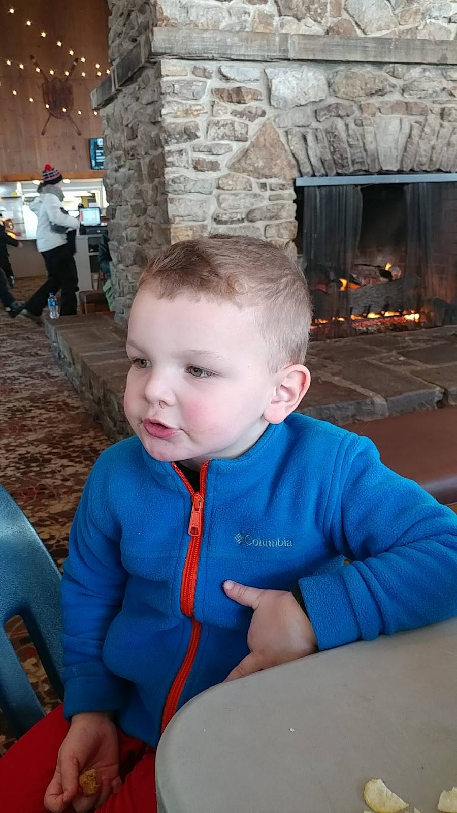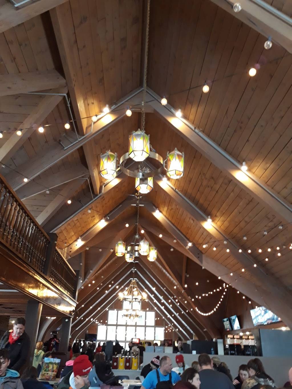 Large convenient facility with food and beverages. Nice ski shop ~ AND, a fireplace! ????