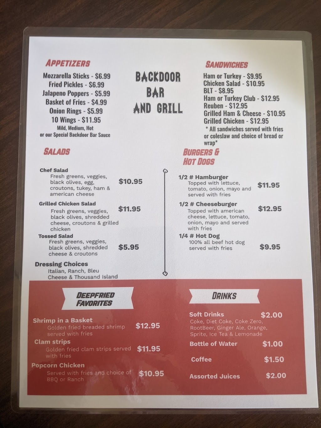 We needed a local place for a small gathering and Backdoor Bar and Grill fit the bill. Excellent light luncheon and great service.