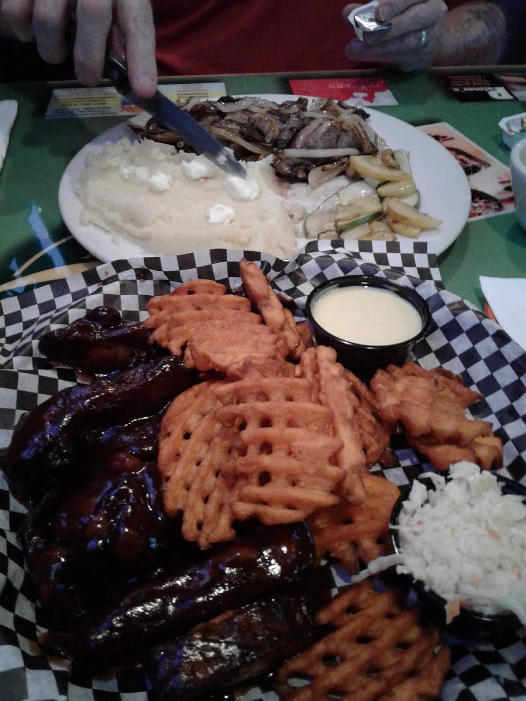 Very good service. Burgers were filling and this place had great choices of sides. Nachos were a lot of food and delicious. We were just passing through town and so glad that we stopped here. Even though it was a sports bar it was good for the kids.
