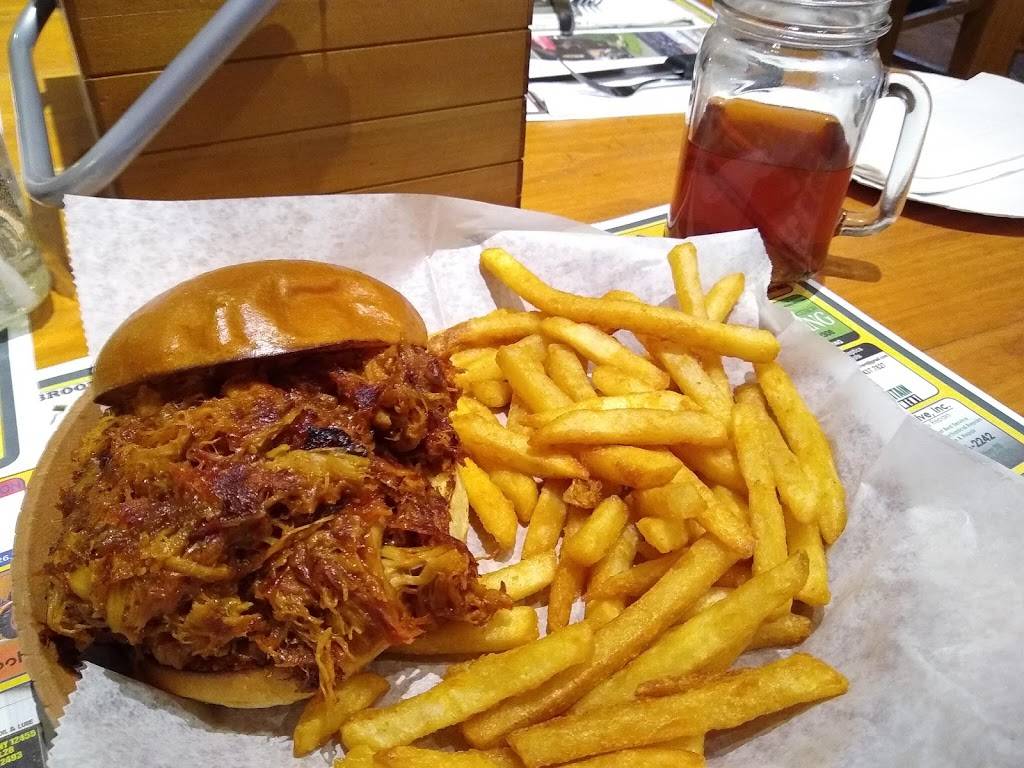 Great food. The smokey burgers and thin crust pizzas are some of the best. You can never go wrong with wings either. Such a cool atmosphere for an odd location. Some of the best food I've ever had