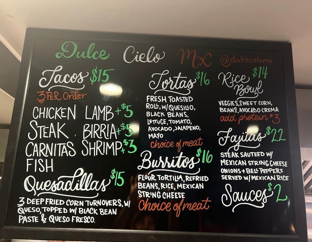 Went out to chill at Roosevelt Bar and was surprised to see Dulce Cielo MX there serving tacos. They were delicious and was so pleasant be there. Recommended to go.