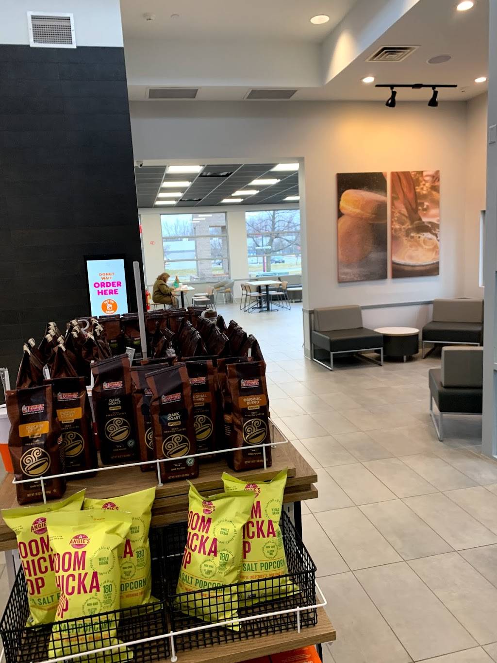 This is a great new Dunkin! Also, this is a great use of an otherwise abandoned building. The design of the space is fantastic. There is lots of seating and it feels really spacious. It definitely feels like a Dunkin inside, but with a modern edge. The staff are very friendly and helpful. The donuts are very fresh. The drive through is efficient. They also have a mobile order pick up lane in the drive through. The future of ordering Dunkin is here!