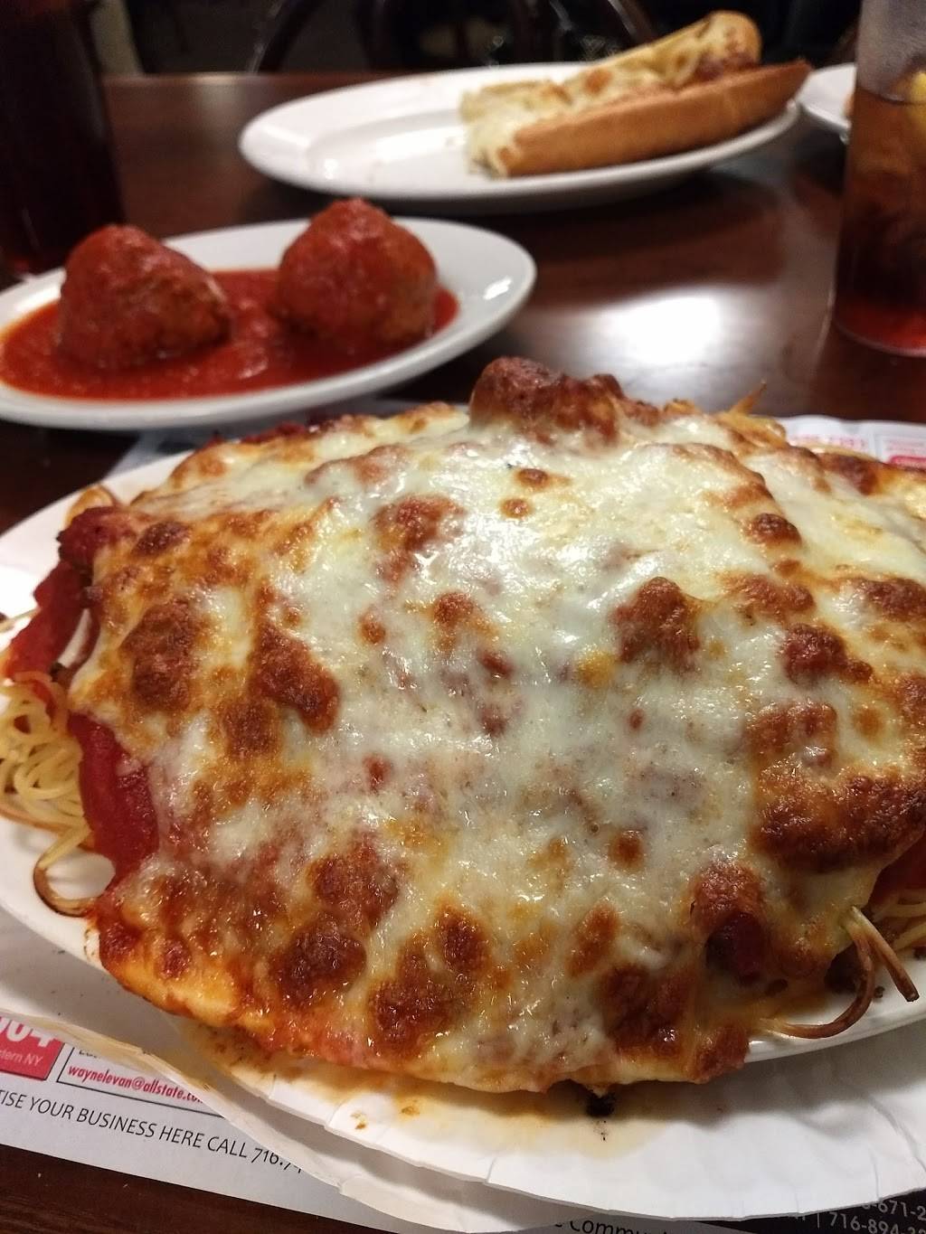 Hole in the wall place. Don't let looks deceive you. The food is good and portion sizes are huge. We went with an Italian who said the sauce was too sweet and there wasn't enough garlic. The rest of us loved it. Bread service is included, but we also got garlic bread with cheese.