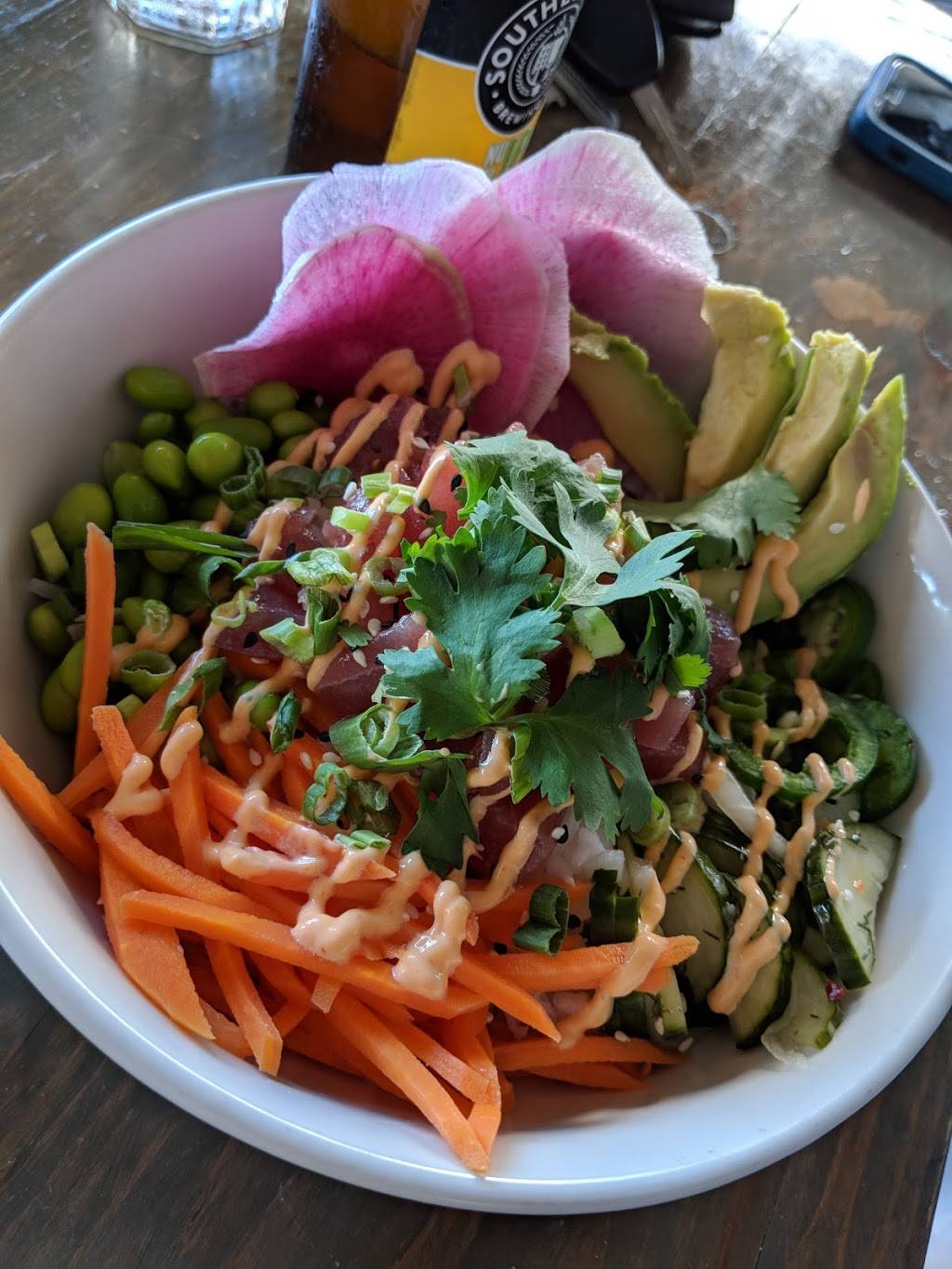 Great view. Great atmosphere. Couple things that didn’t make it great. You can’t order food at the bar area. That’s where all the outdoor seating and spectacular views are located. Another was four of the seven beers they had listed in their menu were not available. Lastly, when we were seated, the woman told us we had 50 minutes to eat because there was a reservation. Felt really rushed.