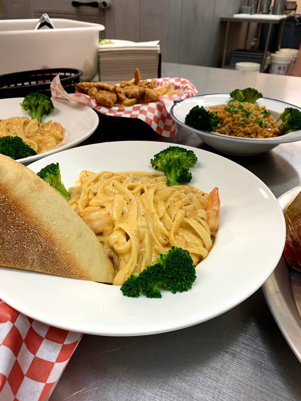 My boyfriend and I loved our first time there! The place HAD just opened, so they weren't 100% fully operational. But we didn't care. The food was on point! I had the Jambalaya with shrimp, and the portion was perfect, and the taste was amazing! I also had the fried scallops with french fries, and they were so good! The sauce they give you for them is awesome! You can write on the walls there, and they cover your table with those big pieces of brown paper (it's messy after all). We didn't care that the atmosphere was a little plain, and we didn't care that they hadn't received their liquor license yet. The server we had seemed new. Shy, but very sweet. And she got our order right, which is all that mattered. We will be going again!!