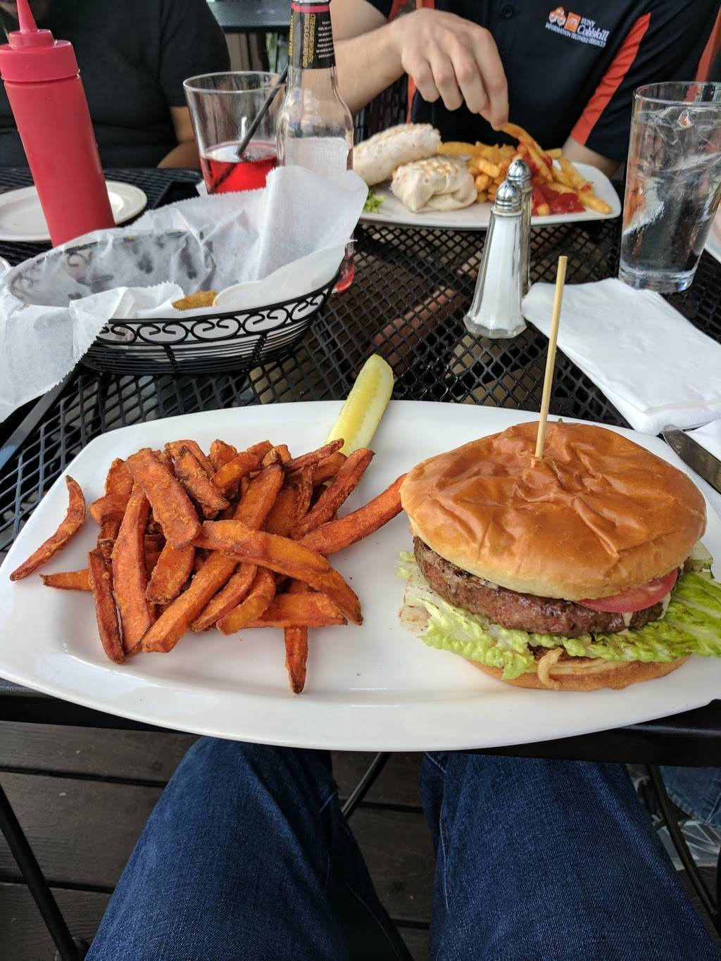 Good place for a small to med size group. Lots of seating options inside or out. Need reservations though for a bigger crowd or if you want to assure outdoor seating. The players panini was quite good. And the burgers were well liked by all those who ordered. The other sandwiches were all well received. Fries were super crispy and flavorful. Full bar menu and some good local/regionally represented brews. Only street parking.
