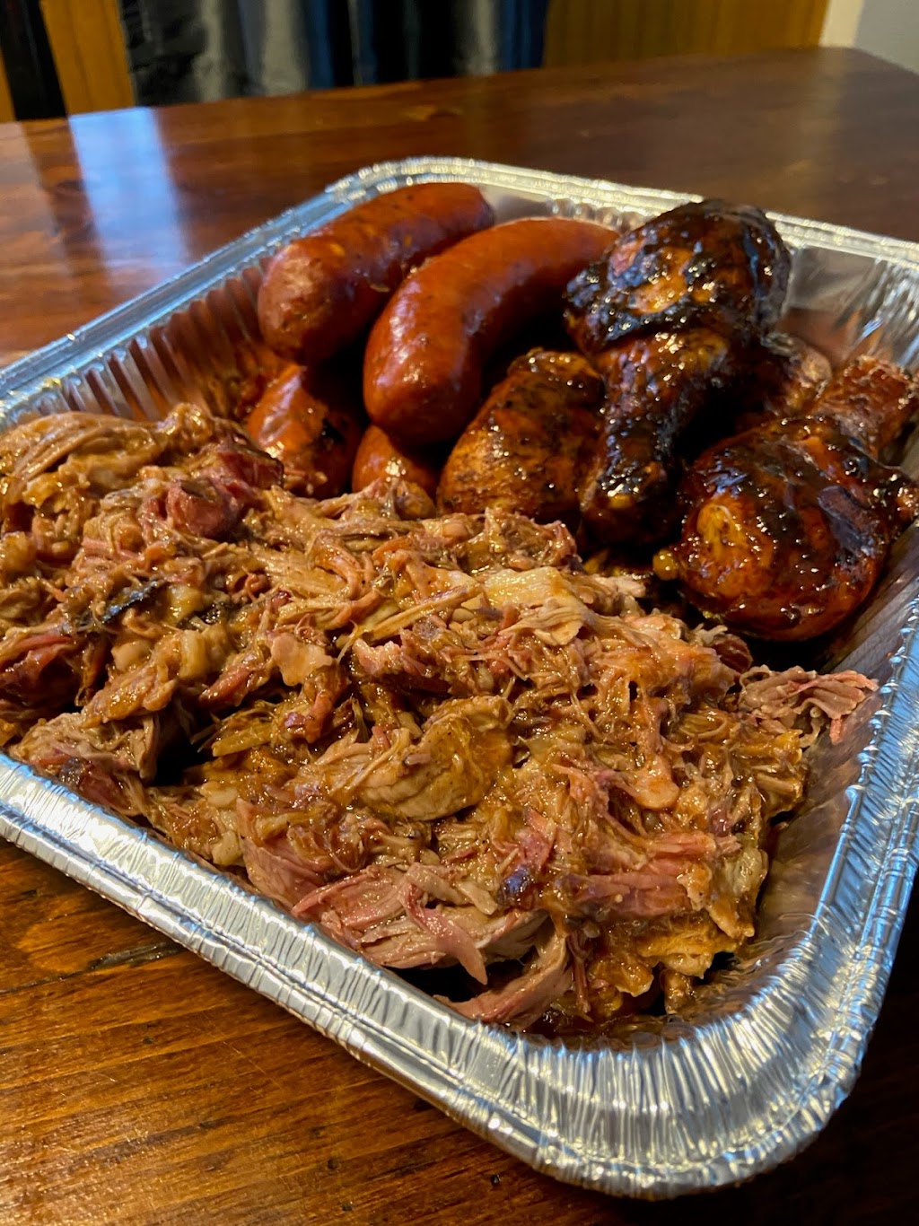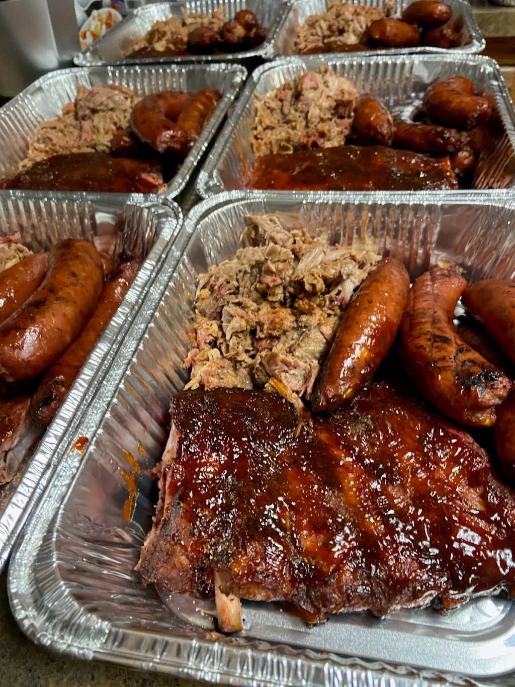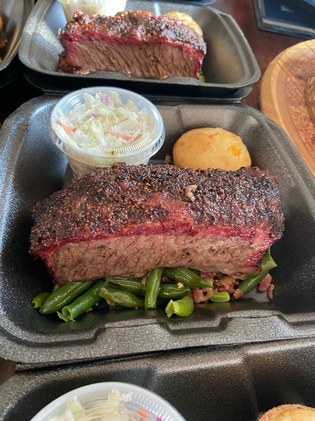 Had brisket dinner, sweet BBQ sauce. Pulled pork dinner with Carolina BBQ sauce, and the rib dinner sweet sauce. Cole slaw collard greens. All excellent. Great first day. Friendly service.