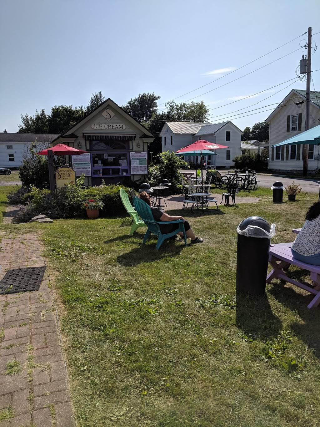 Lovely little town green with picnic tables. Pretty well stocked ice cream shop: probably wouldn’t order food from here. Prices are decent for the area, and portions generous. Would be made so much better by a shade tree or some umbrellas. A little ambiance! Radio was playing a little loud. Nice enough folks.