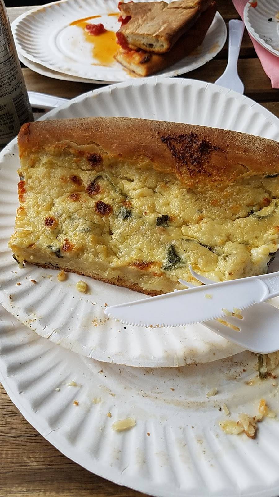 However, the pizza is 2 star quality. It wasn't very hot, barely warm honestly, and the crust was not only burnt, but so dense and tough from sitting under a heat lamp that I could pick up my huge square slice without it doing the classic pizza droop. My friend ordered a regular cheese slice, and was given pepperoni that he had to pick off. It's hard to find bad pizza, but Artichoke's made it easy.