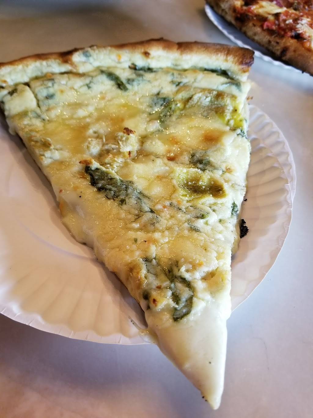 The reason this place gets a 3rd star is for Rocky, the host with the most. My friend and I stopped to use the washroom and I decided I wanted to try a slice of pizza. We were on line when Rocky invited us to sit at the bar to order instead of waiting. He could sense our newness to this spot and was very welcoming. Rocky gave us good insight on what Artichoke's has to offer from a full bar menu, karaoke nights, and music on Fridays. His knowledge of the restaurant and BK in general was neat to hear.