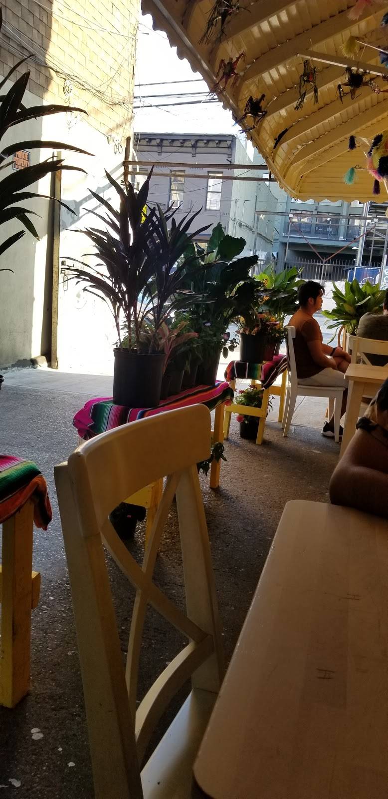 La Abuelita consistently makes very delicious Mexican food :] The kitchen's in the back, the front's a deli with fresh tropical fruits and produce, and there's also yummy pastries like thres leches cakes! the outdoor seating area to the right is a nice hang out space. I really like the wholesome atmosphere of this mom-and-pop shop, the family working here is very nice. Highly recommend to anyone passing by.