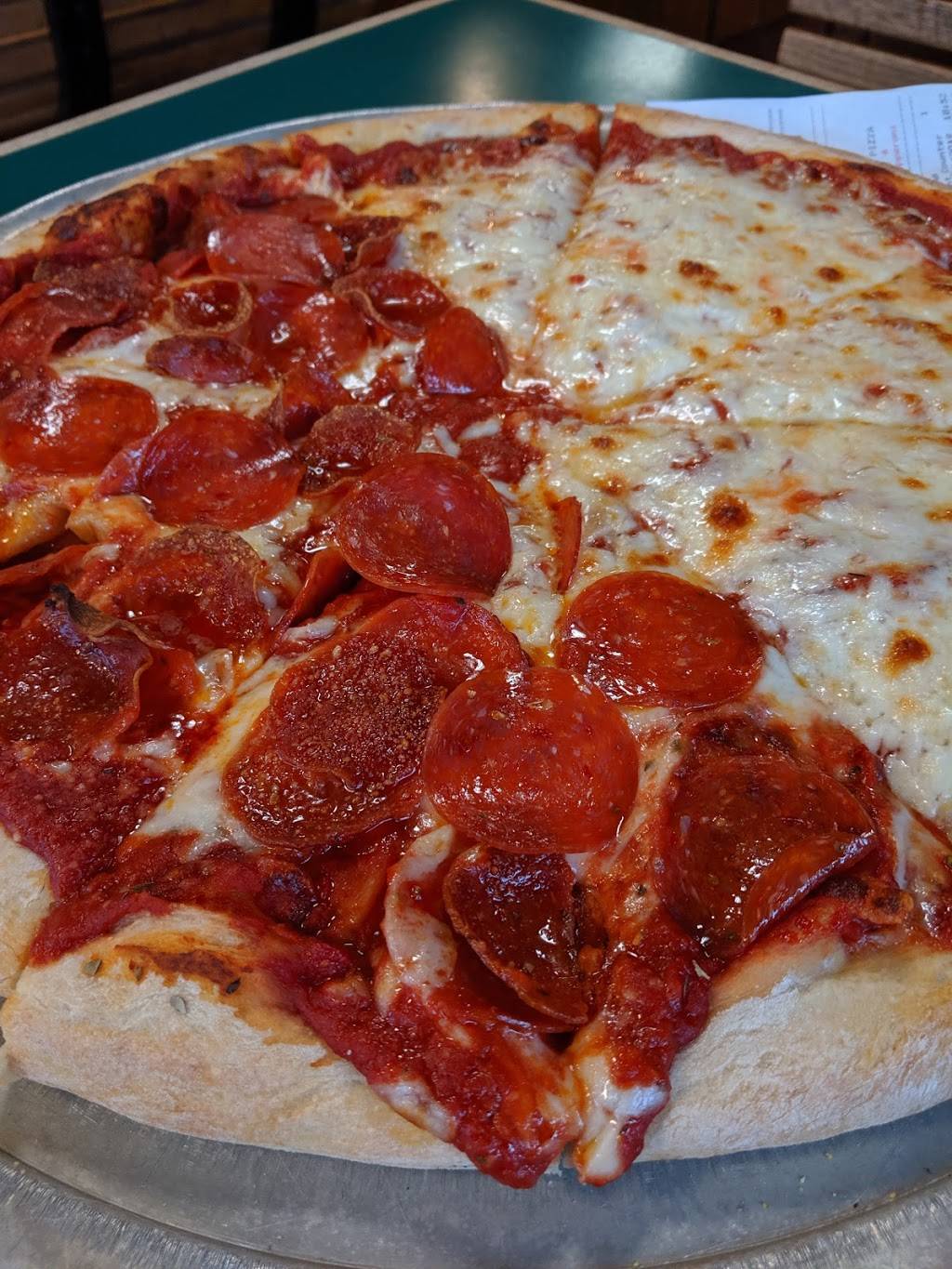 We got a large half cheese, half pepperoni. If you're just two people like we were, don't order a large, go with a medium!
