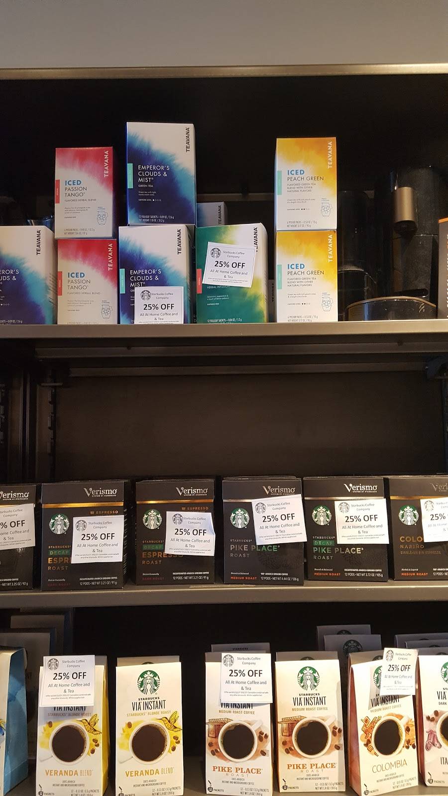 Came here Black Friday morning. Nice chill atmosphere, staff was smiling and friendly, despite having waves of intense activity. Store was clean, including restrooms. I was surprised that that don't carry protein boxes or salads, which was confirmed by staff. Downgraded a star for that, as I was looking for one and will have to go elsewhere. Otherwise, a nicely run Starbucks, worth the stop.
