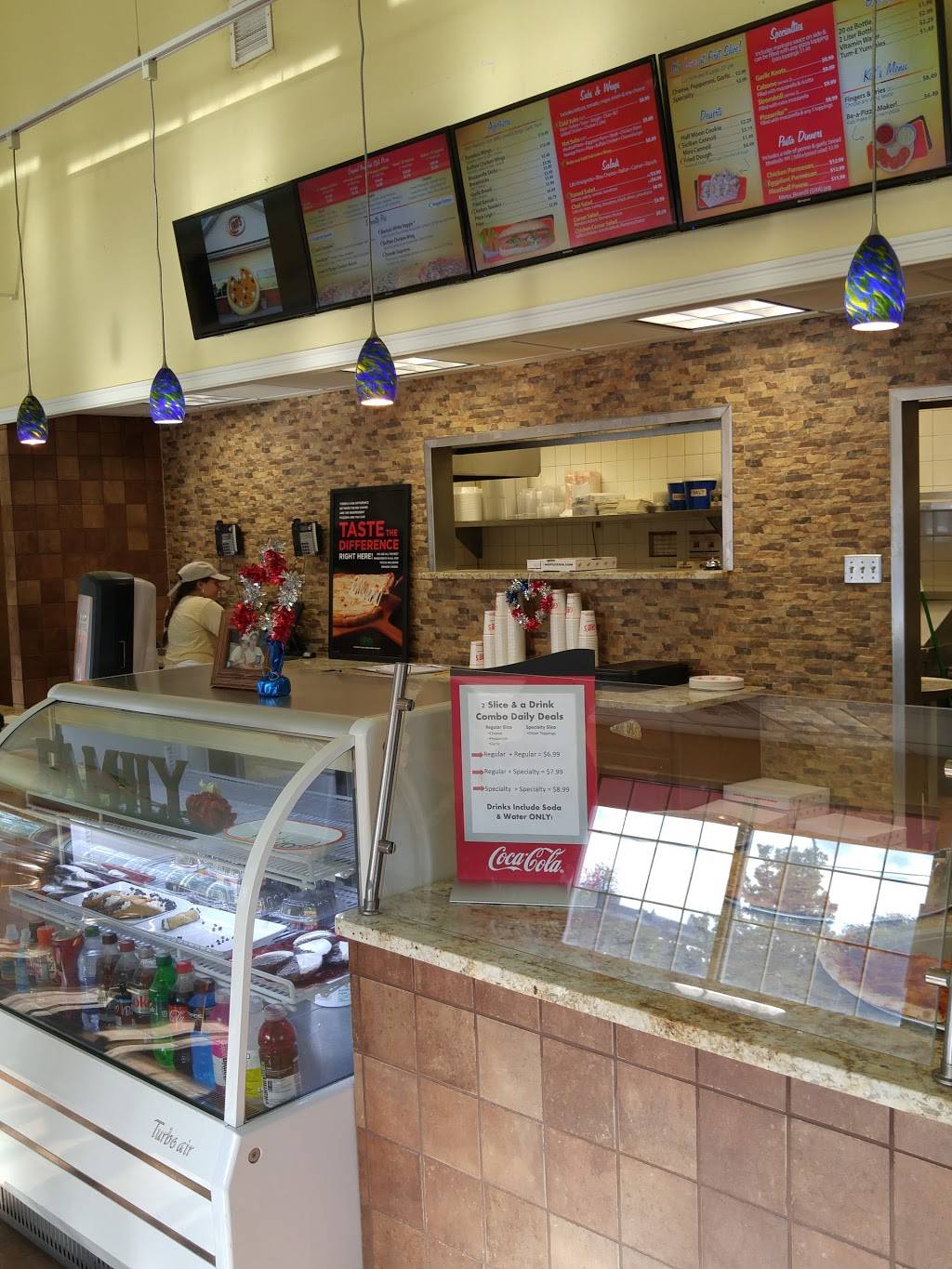Came here with some friends over the summer, definitely enjoyed it. First off, the give your food to you very quickly. Which is helpful when you're busy and just need a quick bite. The pizza was very good for the price, no complaints there. Overall good experience.