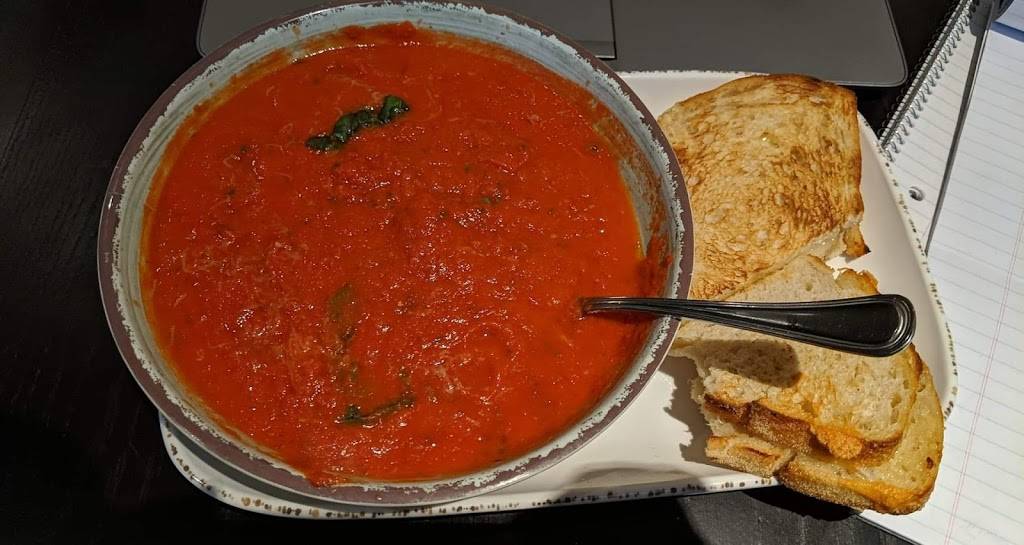 We checked into our hotels and met down stairs to grab a bite after a long long day of travel. The Food was much better that I had even anticipated the pricing wasn't bad at all for the portion size and It's quality. It was delicious! I'll definitely pop in a few times during my stay here at the Marriott. I got the tomato soup and 3 cheese grilled cheese with a glass of wine on a slightly rainy day!