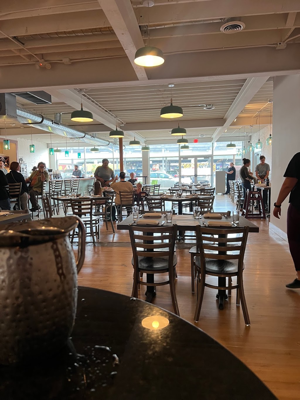 This place was perfect: shared delicious calamari, scallops over sourdough toast w spinach and other veggies plus a delicious wheat berry risotto in ramp butter, and the delicata squash salad. Even the fries are first press Potato. The cauliflower and falafel are also top notch. And get the derby bar for dessert! Plenty of space to breathe and enjoy.