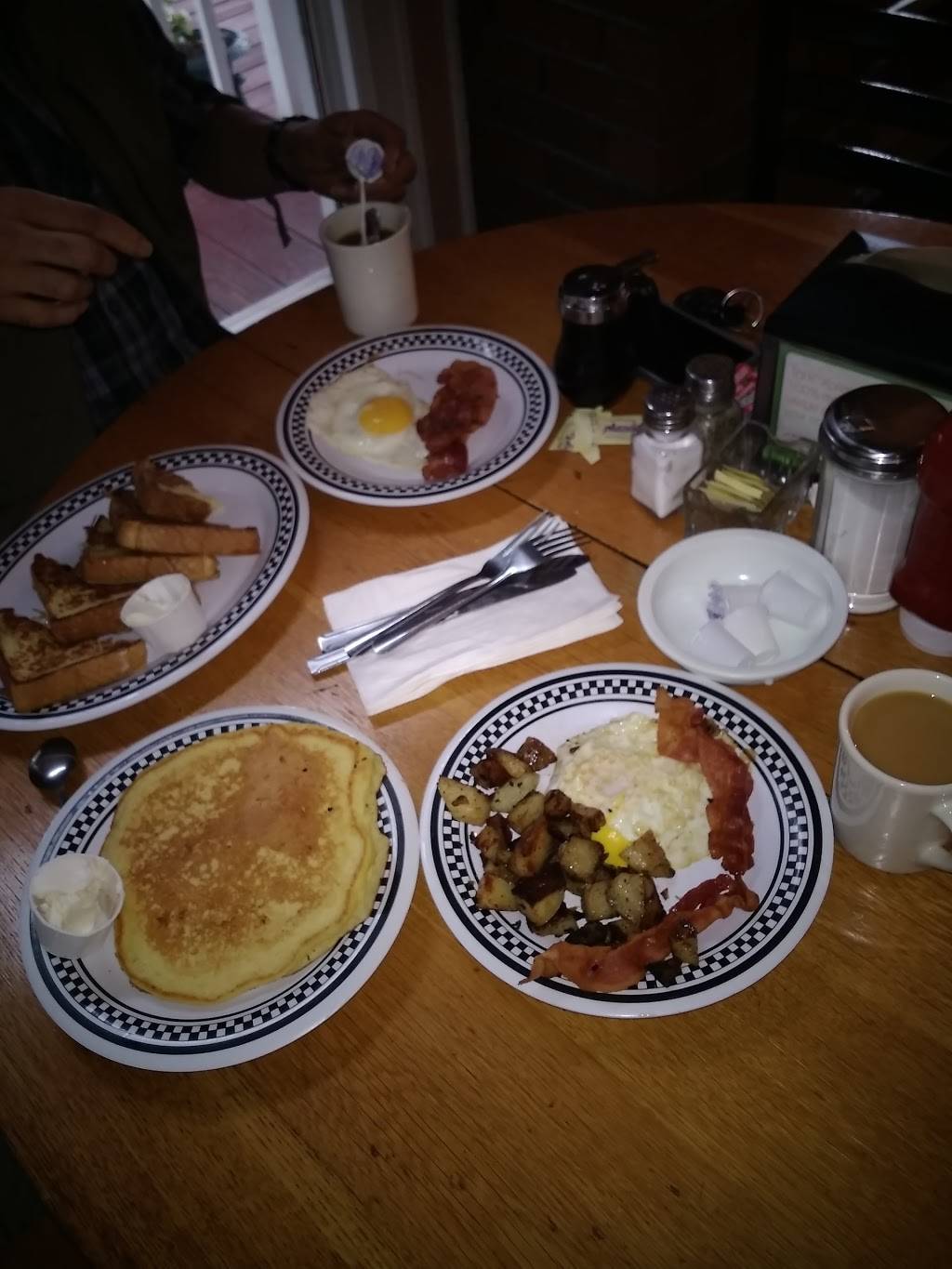 The food was Fantastic. We ordered banana pancakes, eggs, home fries, bacon...Wow! Very good. Our waitress was wonderful. She made sure our coffee cups were full, and our food was to our liking. What a great personality too.