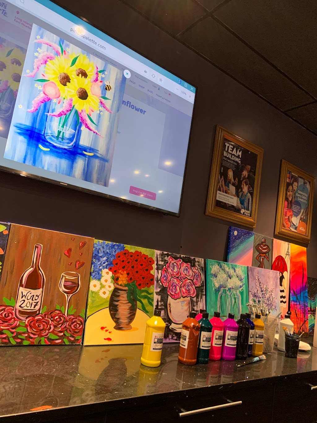 Plenty of space to stretch and paint, comfortable seating, ample hand wash sink, endless amount of supplies and support! parking lot is right nearby.