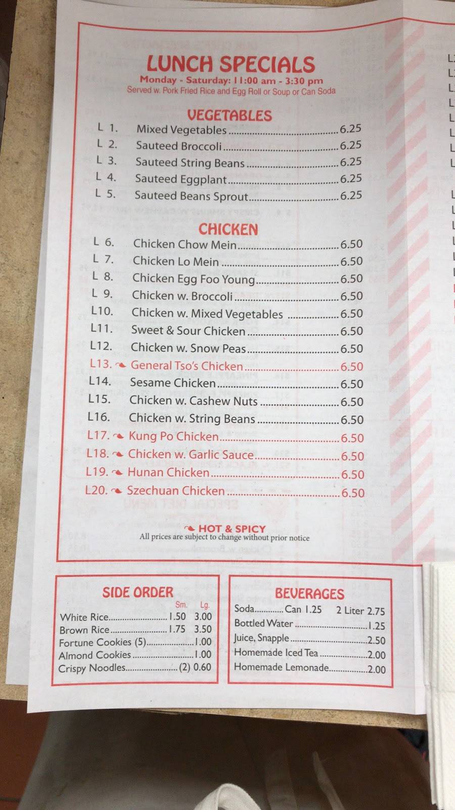 The staff was nice and the inside of the place was nice they even had a couch but the food was ok everything was pretty bland like the beef worh broccoli the beef needed more flavor as well as the dumplings but overall decent prices ok food