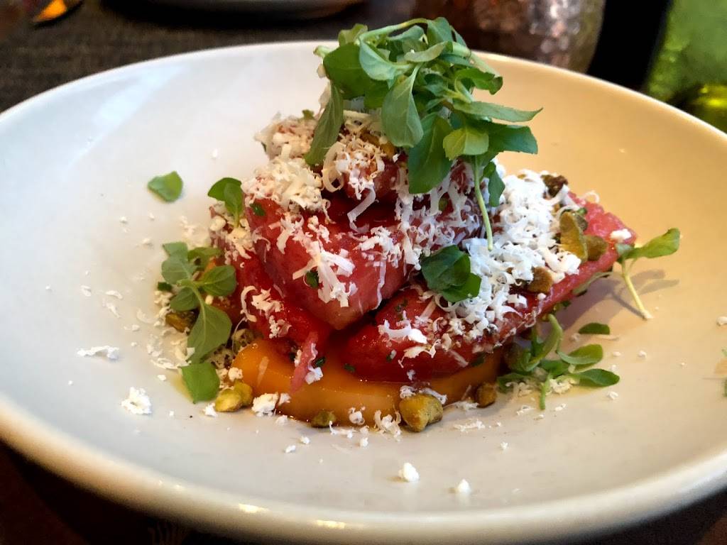 Diverse and delicious menu. Very attentive staff. Shareable plates were fun. Started with grilled octopus and lamb meatballs along (both were “great”) with mozzarella ball. Finished with chocolate mousse, a strawberry meringue dish and pistachio cake for desert. Then made our way up to The Press Lounge for after dinner drinks to watch the sunset. In late Spring/early Summer. Dinner at 5:30pm/6:00pm so you can get a prime spot at the roof top lounge.