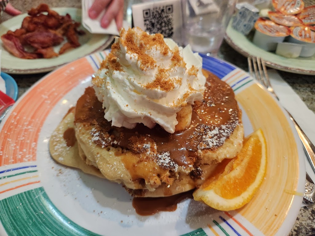 Great classic diner experience! They have a huge variety to choose from on their menu for breakfast. You can get healthier options like the varieties of yogurt parfaits or sweet options like pancakes. The pancake menu is huge and you'll have a hard time deciding but you can't go wrong with any of the options. I got the Dulce De Leche pancakes and tried the Polynesian pancakes my friend got. Both were amazing! I took leftovers of my pancakes home. The place was very busy when we went but the service was still pretty good.