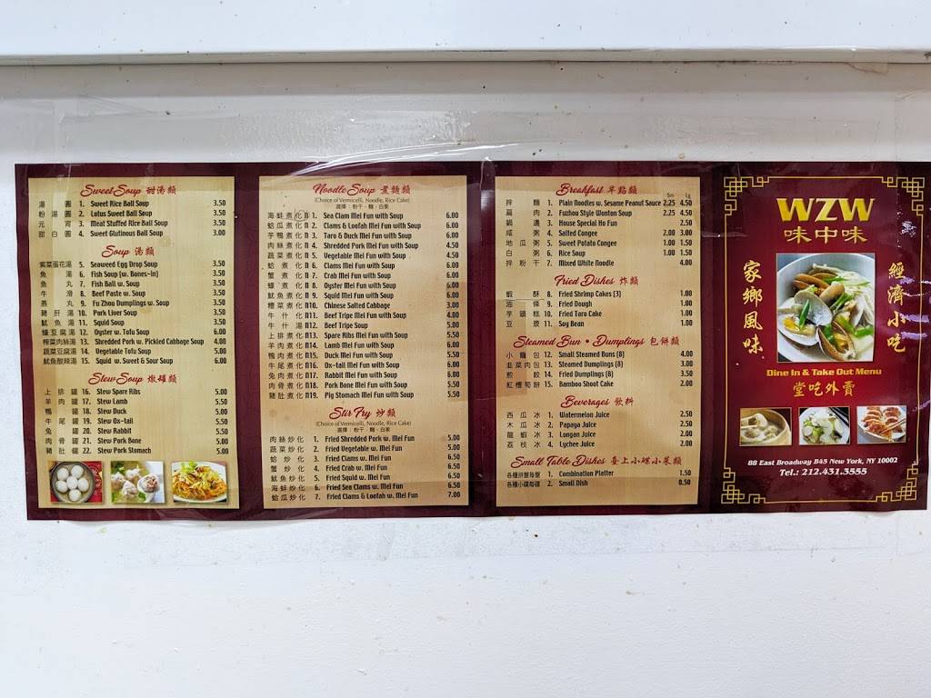 The place exists in the basement of a very empty mall ... the place has a very dirty feel to it ... but the restaurant in the basement has a proud *A* from the NYC department of inspection for restaurants .... very inexpensive prices for very traditional Chinese fast food, my favorites are their wonton soup and peanut noodles ... they also have very decent boiled dumplings ... and stir fried mee fun ...