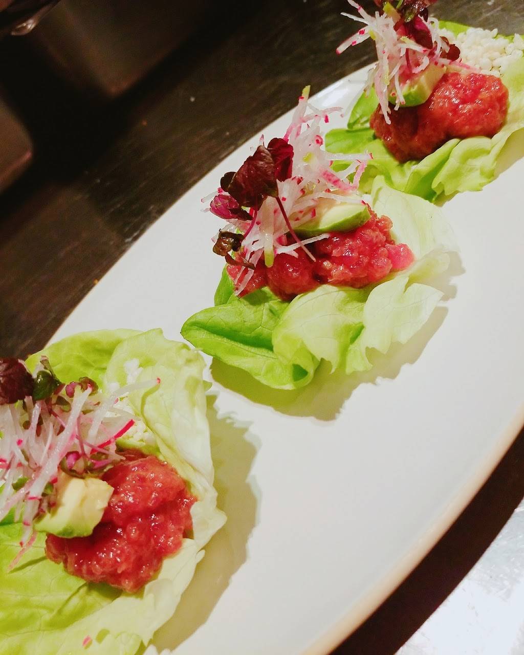 Healthy food choices and great service makes it appealing and enjoyable. Tuna tartar was light and fresh. The interior is a modern take on mid century modern. Very nice music choice as well.