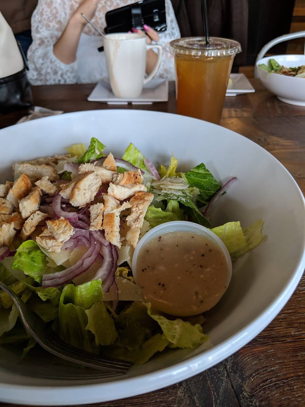 The food is FANTASTIC and the service is great too. The menu is really flexible for people with vegetarian dietary restrictions. Also, their salads don't have any iceberg lettuce in them. This may seem like an odd point to get caught up on but as a person who is very frequently offered salads let me tell you it makes a huge difference. Their greens weren't wilty either, as you sometimes get at restaurants that don't care about quality. Honestly, the worst thing about this cafe is it's total lack of outlets. If you're thinking about doing any work on your laptop or need to charge your phone, this will not be the pace that can help you. They do offer free WiFi but I find it's pretty congested and slow (scripts is deservedly usually pretty busy). Overall though, I'd recommend this place highly.