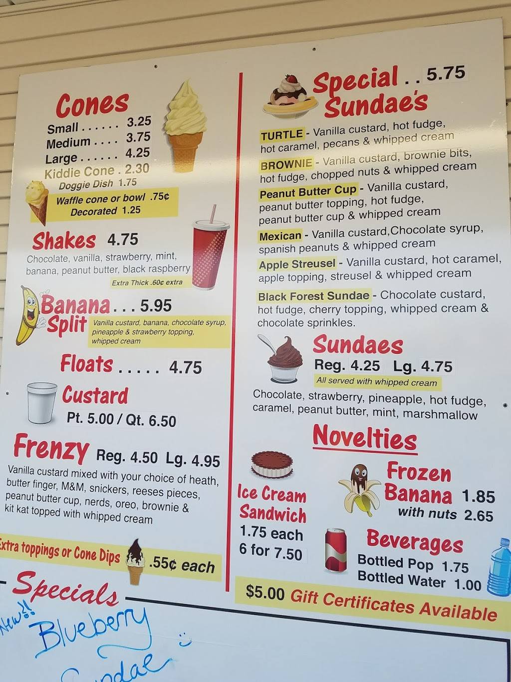 Yummy ice cream and novelties like ice cream sandwiches.