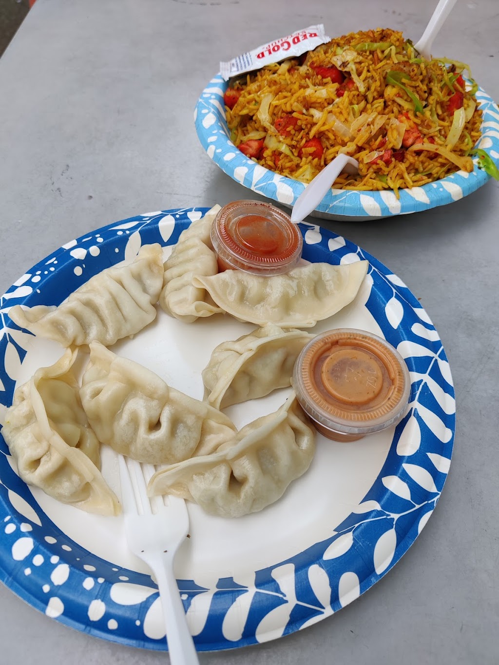 This was a nice food truck that was near convenient seating in the shade. The noodles were very tasty. The samosas were good. The momos were just okay. I didn’t particularly care for any of the accompanying sauces. But the owners were friendly and the service was quick. I would go back for the noodles.
