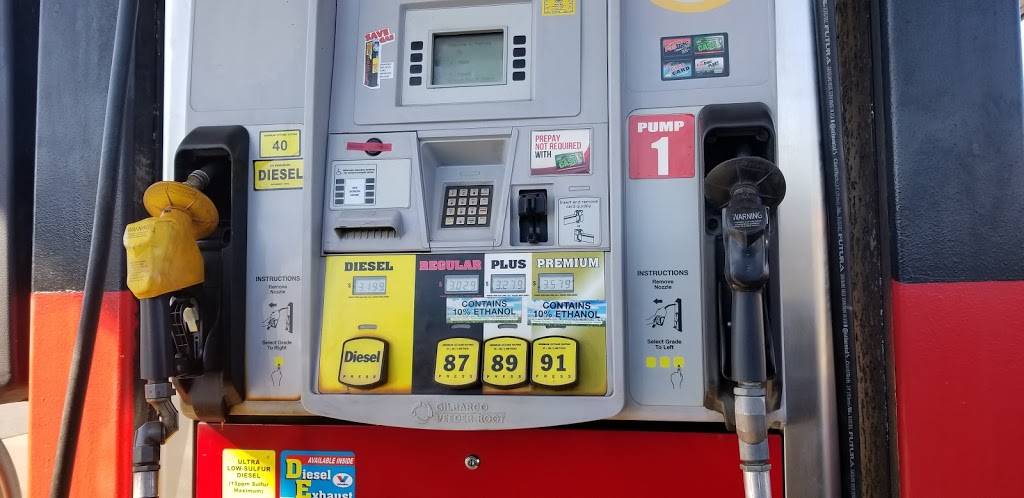 This gas station has a lane in back of the store for diesel trucks to fill up one way in & one way out for them as it is a one way street on each side of this lane. Normal gas station items. They do have a pizza station in this location. Usually clean & nice employee's