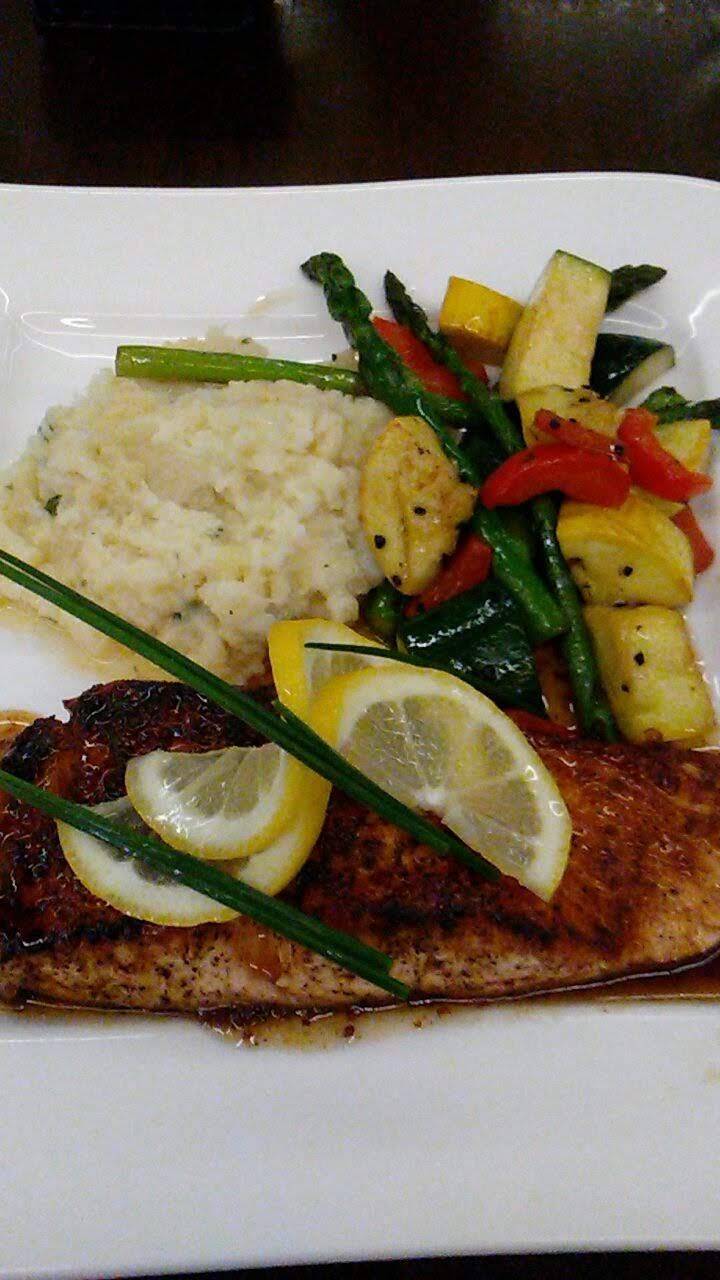 Staying at the hotel overnight. Decided to have dinner at the hotel restaurant instead of venturing out. Good decision. The staff was very friendly, and the seating comfortable. Food quality was very good, much better than expected. For $4 extra you can also get a salad and soup bar added to your dinner order. Very nice. Service was efficient and courteous. Food was good (and good selection too). Prices were reasonable. What's not to like?