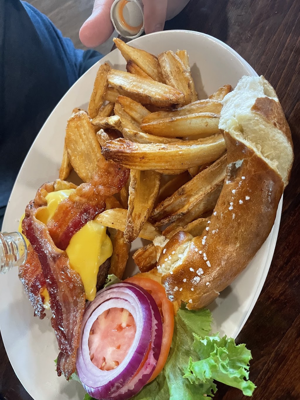 Homey, comfortable atmosphere and serves a great lunch. Baked French onion soup to die for and I consider myself a connoisseur of that dish — this particular style easily equals The Retreat and Phoebe’s, which both have had outstanding French onion soup for many decades! My Reuben was hot, perfectly done and large enough to take home half and have it for dinner.