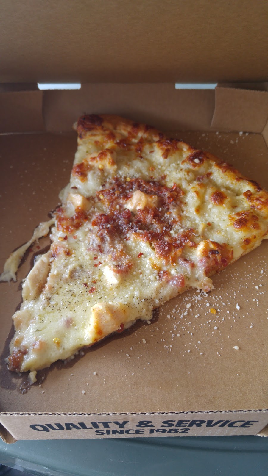 I snagged a slice of their pepperoni. The size was quite large. The dough was nice with a good chew and crispy. The sauce was also good with a little sweetness to it. They were generous with the pepperoni. Can't do much better.