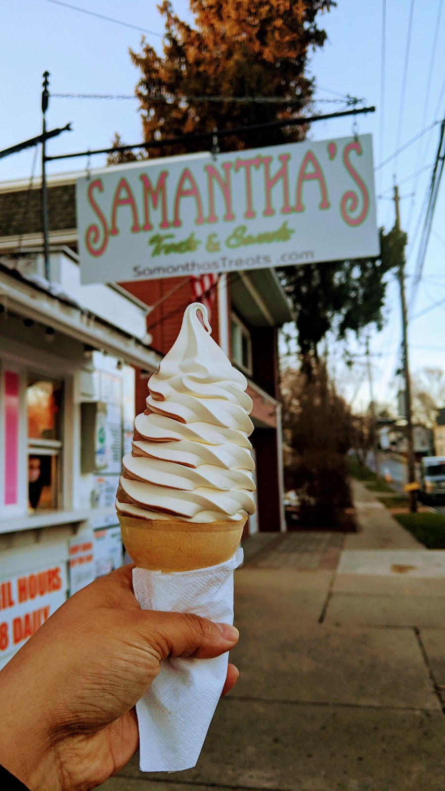 Yesterday my new husband and I celebrated our wedding reception at an outside park. One of the highlights was the ice cream! Samantha’s provided the freezer (see attached) and the Hershey ice cream treats. Our attendees were thrilled as it was the perfect touch to our perfect day!