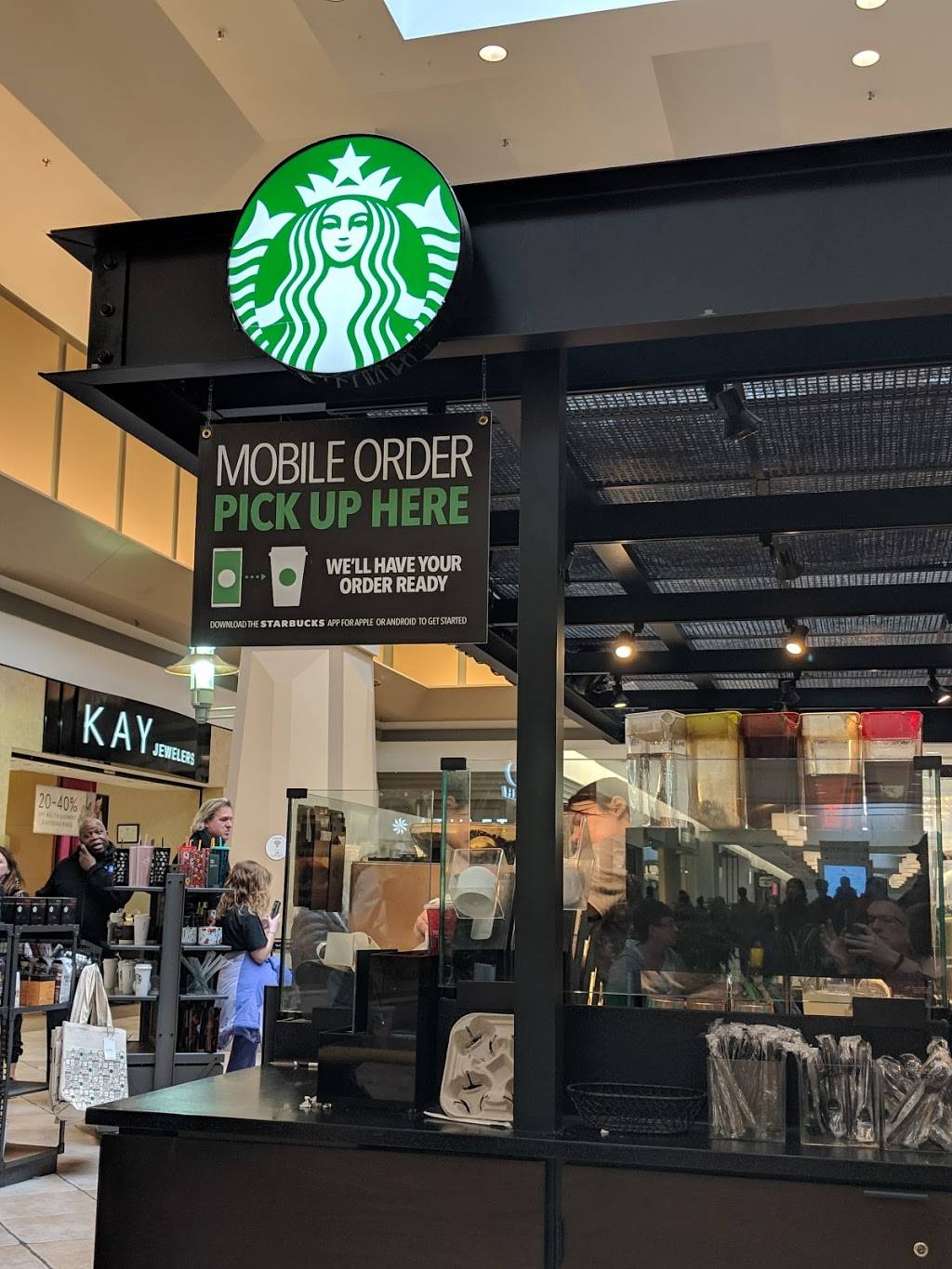 Good, efficient, friendly location. Centrally located in the mall, so it's almost difficult to just walk by it if you enjoy coffee and baked goods. Cool starbucks paraphernalia as well