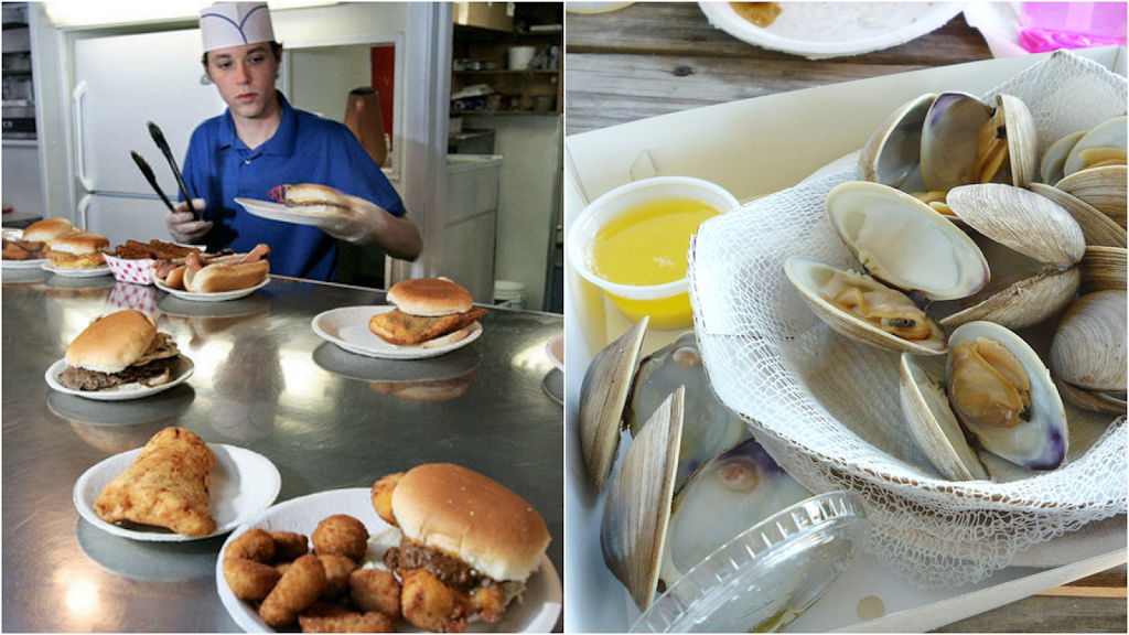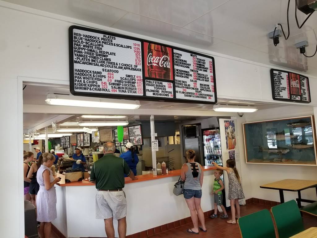 We had fish hot ;& a blue plate which is deep fried Haddock pieces & Scallops each were done perfect each came with fries and a side we each got mac salad- oh so good the sides are quite small but the portions of the fish were huge! We asked for tartar & lemons, which were so fresh & juicy. Of course the rolling lake, a family of kids swimming in the waves & scores of rock throwers and plenty of free souvenirs for Rock collectors & painters were the entertainment!