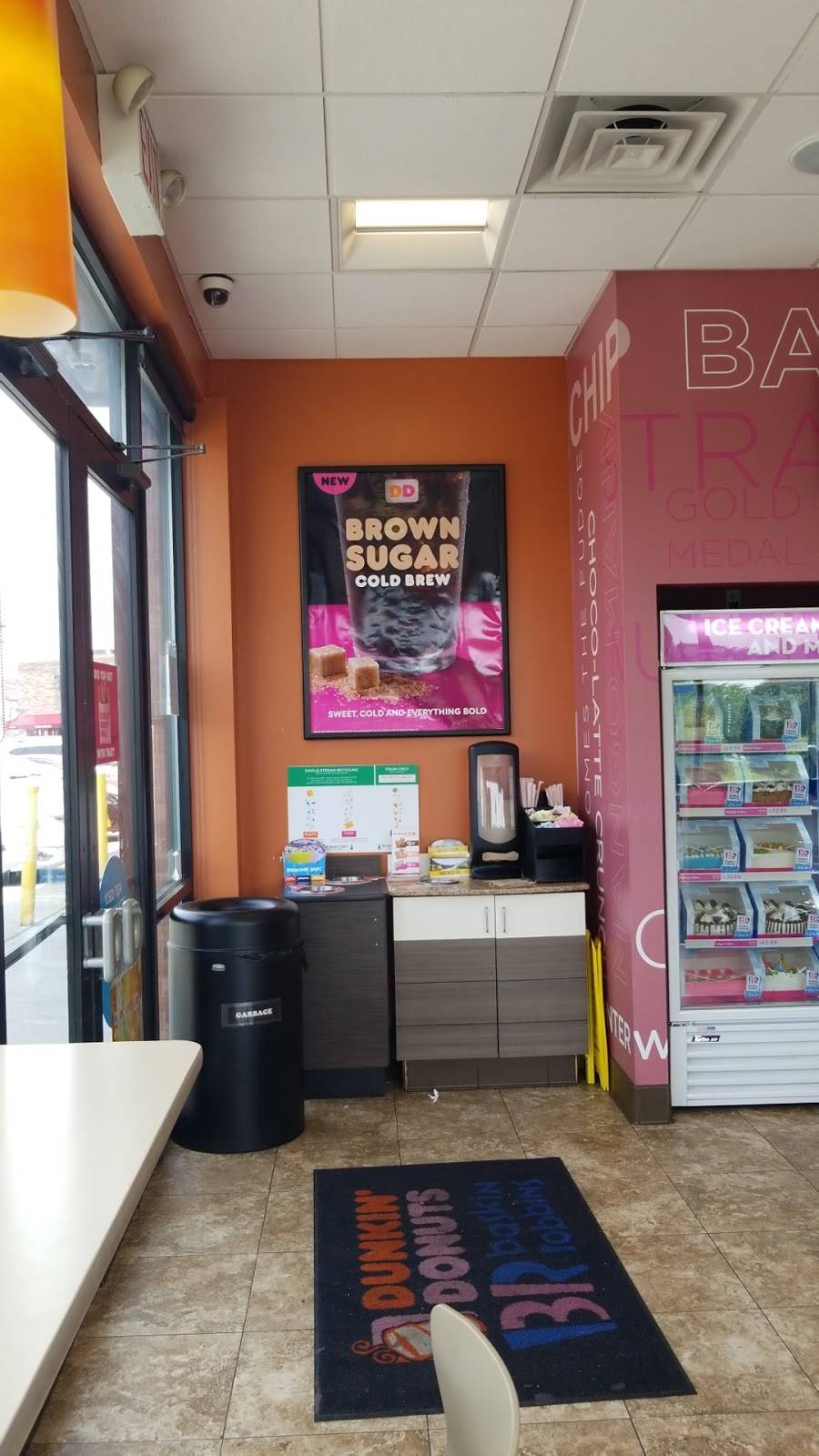 This DD has a clean environment. Has several tables. The staff was polite. It is convenient since the parking lot is in front of it. I am more of a Starbucks person than a Dunkin' Dunuts person due to the quality of coffee. To me, Dunkin' Dunuts products is very sugary. For this reason, I only ask for a freshly brew coffee with milk with the option for me to add the sugar, with a Boston Cream.