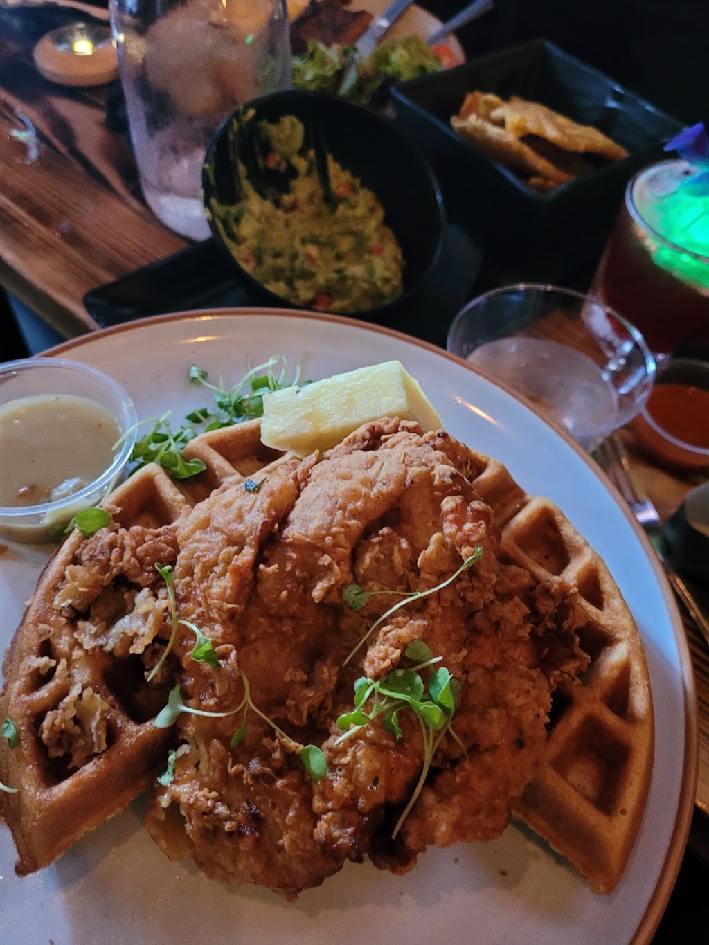 Great service, great food, and great drinks!!!! Great vibe for a date night ambiance is amazing! Come camera ready! Plenty areas to take pictures