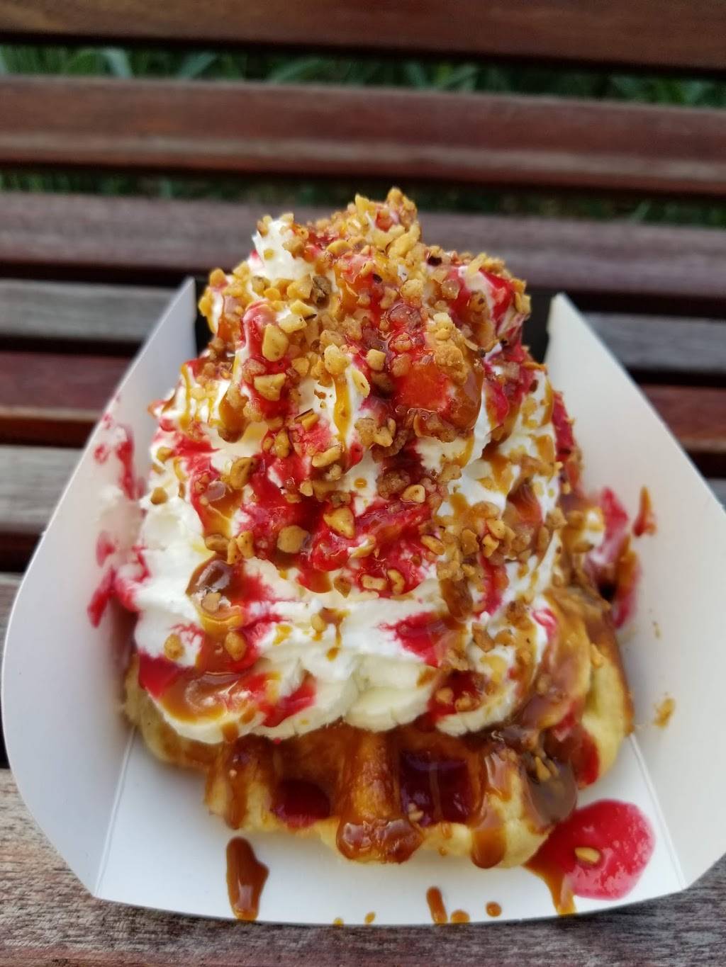 Delicious Belgian (liège) waffle made fresh with various topping options, served hot and fast; all with great quality and friendly service (par une Française). What more could you ask for? Merci beaucoup!