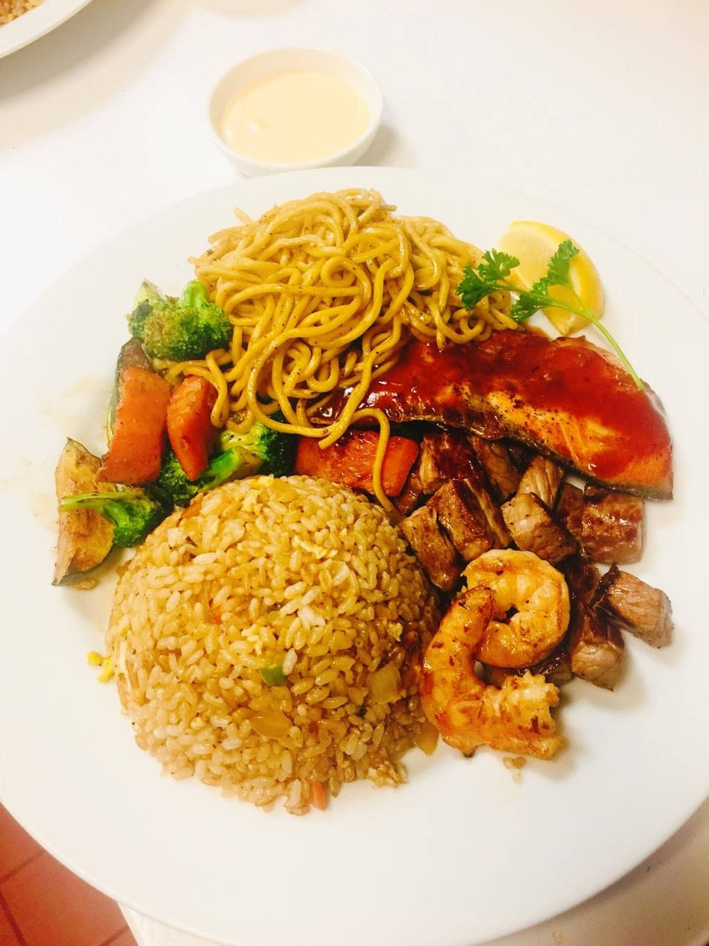 Went to dine in for all you can eat sushi and learned it’s under new management (no all you can eat). Stayed to give it a shot and were glad we did. Very nice staff, good service (though we were the only ones in the place at that time). Great options. Soup, salad, fried rice, hibachi noodles, and spicy salmon roll were delicious! I didn’t love the hibachi chicken but it was good. The sauce was a bit different that I’ve had in the past...more BBQ like. My friend said his hibachi steak and salmon were ok/good too. They gave free sake on the house. I’ll definitely be back.