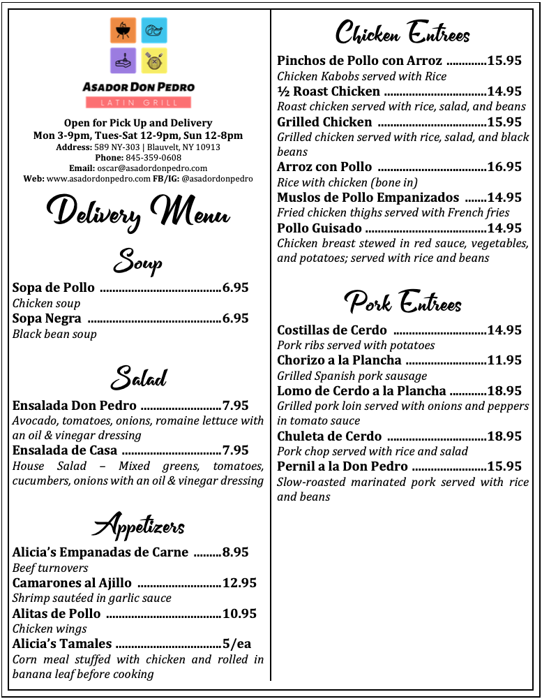 You can review this Business and help others by leaving a comment. If you want to share your thoughts about Asador Don Pedro - Latin Grill, use the form below and your opinion, advice or comment will appear in this space.