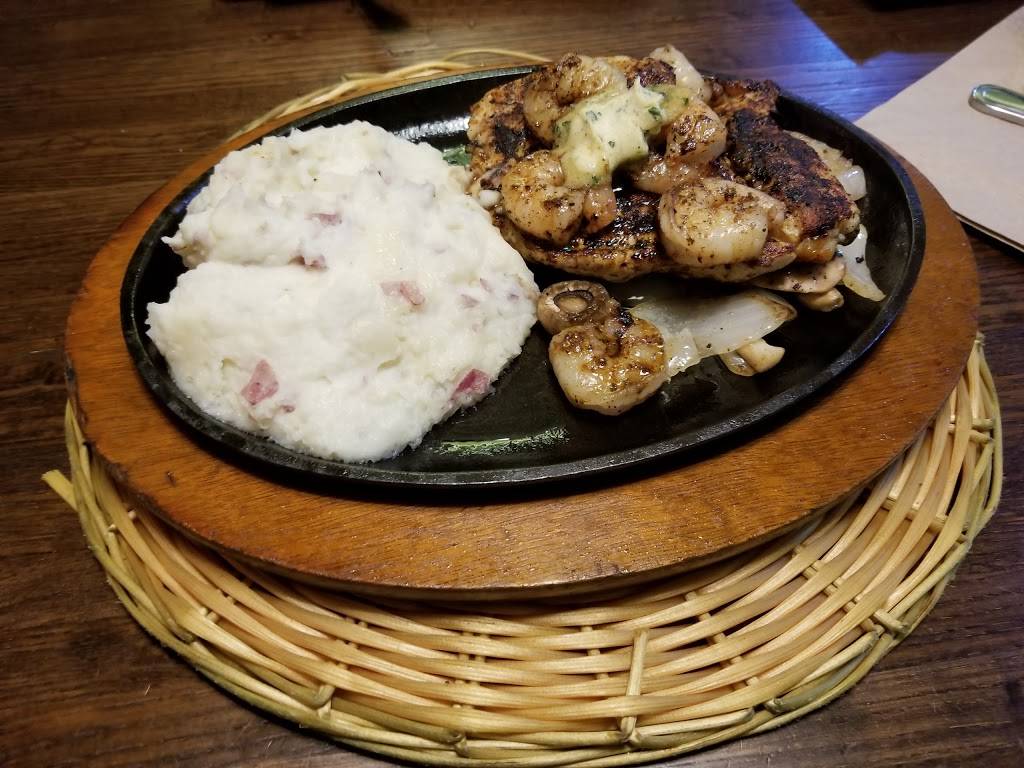Okay food in a typically themed chain restaurant. The food is okay, nothing special. Dollar drink specials are nice if not a bit watered down. My mashed potatoes managed to be served absolutely ice cold in the center but my steak was actually medium, which was a nice surprise. Waitress was very friendly if not a tad forgetful.