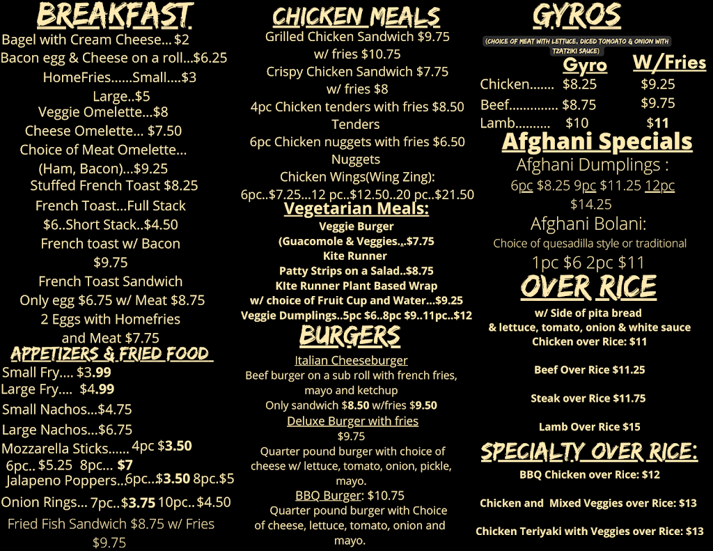 I went to Kite Runner for the first time this afternoon. I really enjoyed my food! It was delicious! I also enjoyed the owners. They are kind, friendly and a pleasure to speak to. Give the eatery a try! I had the Afghani veggie dumplings with sauce and the chicken over rice meal. Delicious! I’ll definitely will be back!!