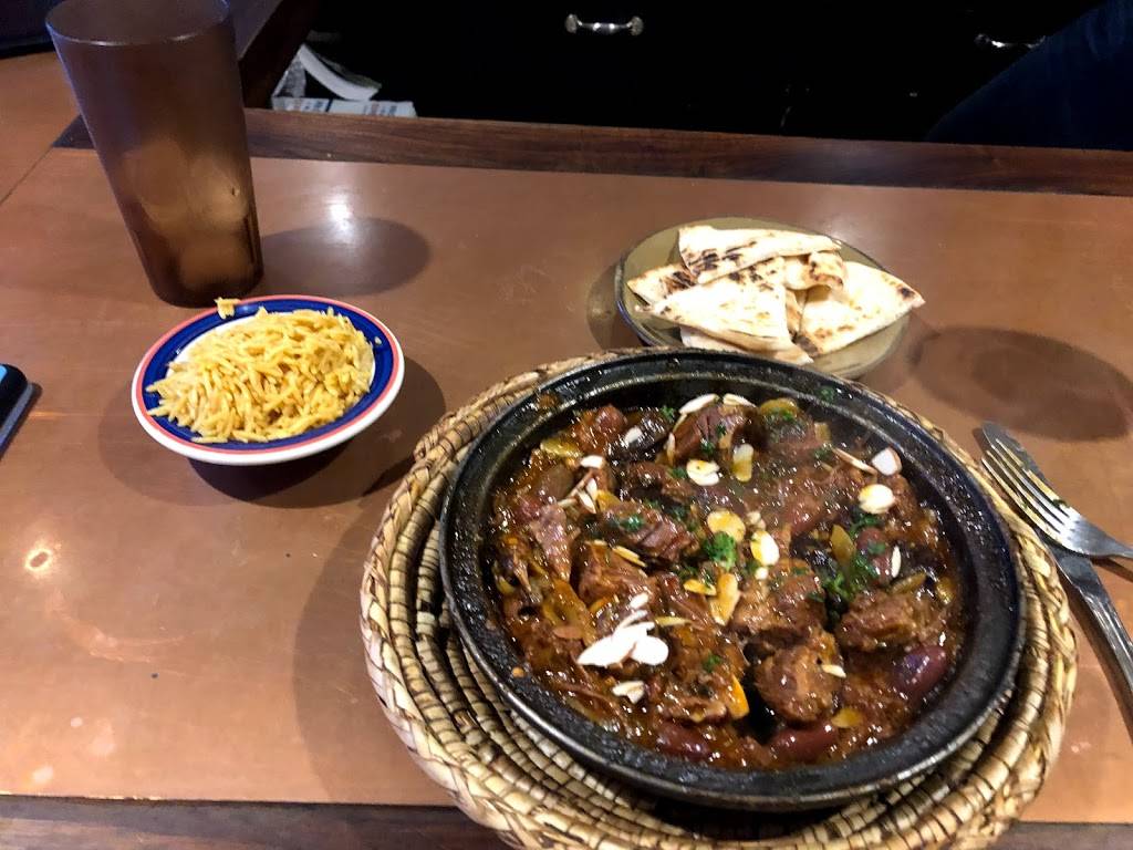 Having never tried Moroccan food I was pleasantly surprised with the offerings. I ordered chicken with vermicelli, saffron and toasted cumin, it was quite tasty. Every order is accompanied by bread and rice, which I immediately added in with my dish. The food is cooked in a traditional tagine pot and served still in pan over a wicker dish for insulation. Everything served was piping hot and delicious. The eggplant dip was also very good spooned onto the bread and I could eat it as a spread on a sandwich even. Overall very good.