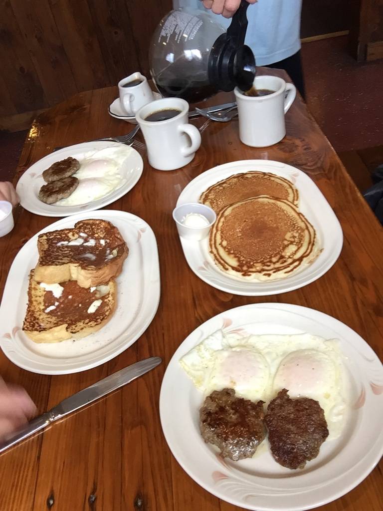 The best, fluffy homemade bread for the french toast. I usually dont like thick french toast but this was soo good. Eggs cooked perfectly, soo good homemade sausage. Great service. Perfect place to end a camping trip.