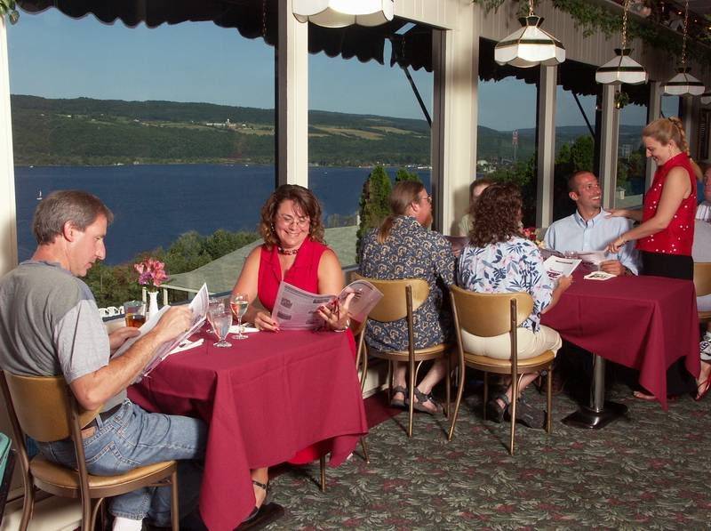Beautiful view of Seneca Lake and excellent food. Never heard of eggplant fries before. They had them. We ate them and they were delicious. The special for the evening was grilled chicken and shitake mushrooms in a gorgonzola cream sauce served over bow tie pasta. The sauce was excellent. Gorgonzola was not over powering and the sauce was a great consistency. The recipe was well executed.